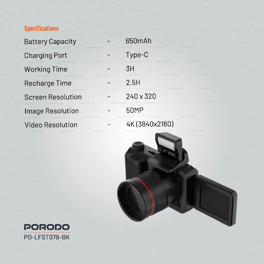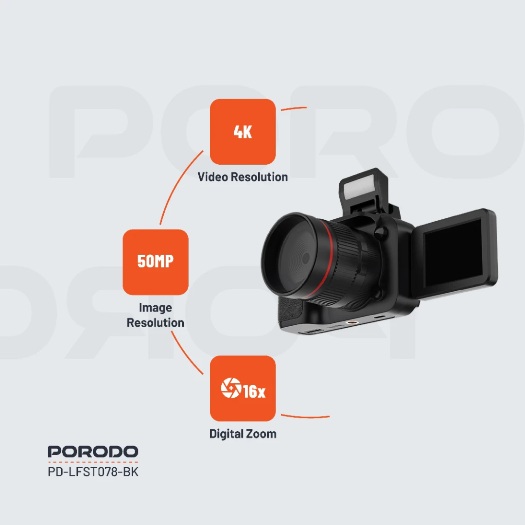 - مقاوم وهوشمند: **رزولوشن عکس 50MP** - کیفیت فوقالعاده - **فیلمبرداری 4K (3840×2160)** - ثبت لحظات با وضوح بالا - **زوم دیجیتال 16X** - عکاسی از فاصله دور - **صفحه نمایش 2.2 اینچی چرخان 180 درجه** - مناسب سلفی و ولاگ