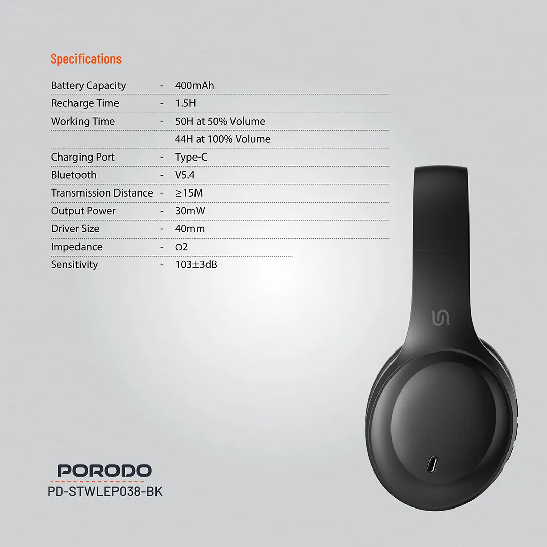 - مقاوم وهوشمند: - **درایور 40mm** - صدای غنی و پرجزئیات - **باتری 400mAh** - **50 ساعت** پخش موسیقی (در حجم 50%) - **شارژ Type-C** - شارژ کامل در **1.5 ساعت** - **بلوتوث 5.4** - اتصال پایدار تا **15 متر**